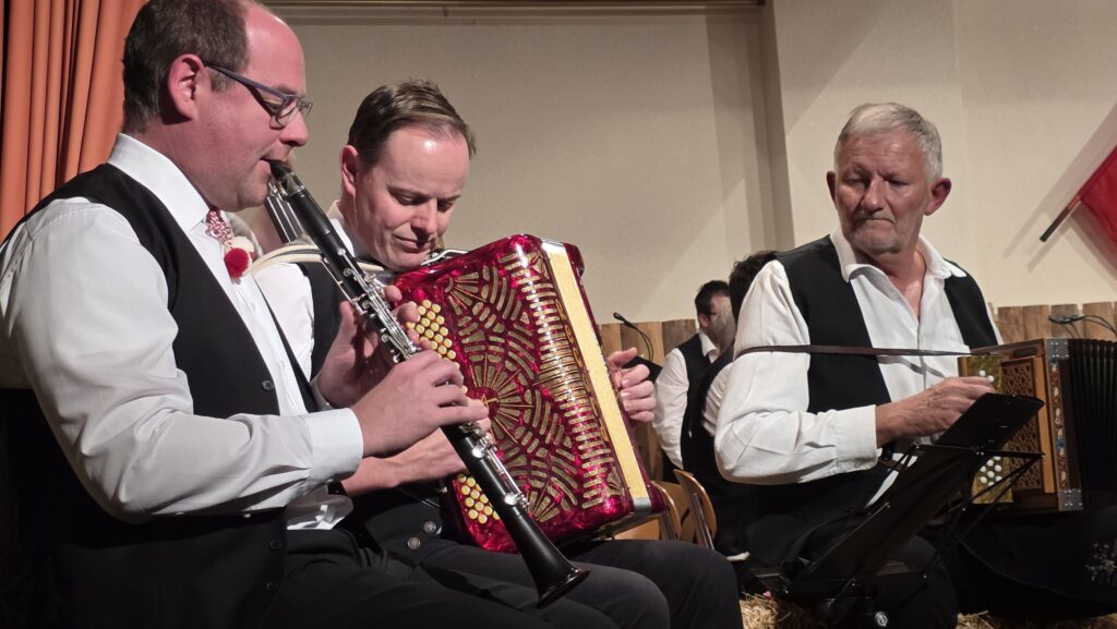 Bereits beim Einmarsch der Musikantinnen und Musikanten sprang der Funke auf das Publikum über. Die hauseigende Ländlerkapelle eröffnete den Abend mit dem schwungvollen «Wybergstörm» von Kaspar Muther. Spontane Juchzer aus dem Publikum sorgten schon zu Beginn für beste Stimmung. Moderator Walter Infanger führte mit Witz, Charme und sicherem Gespür durch das Programm und brachte das Konzertmotto augenzwinkernd auf den Punkt: «Weil wir dieses Jahr keine Älplerchilbi haben, organisieren wir halt selbst eine.»
