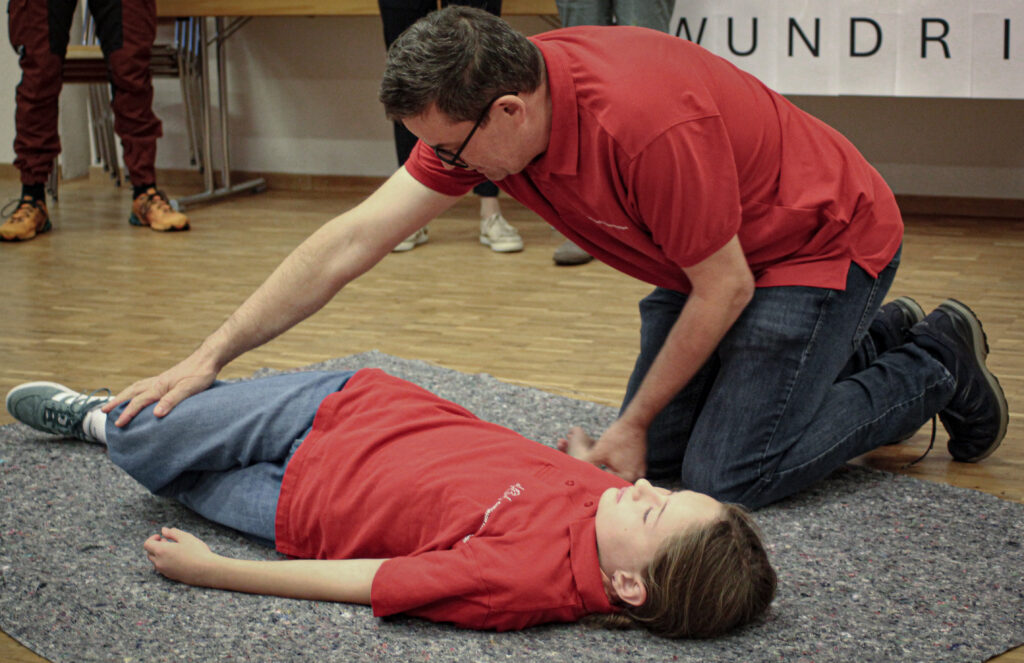 Roger vermittelte das Thema mit viel Humor, praktischen Übungen und echten Geschichten aus seinem Berufsalltag als Sanitäter. So wurde schnell klar: Erste Hilfe ist nicht nur wichtig – sie kann auch richtig spannend sein.