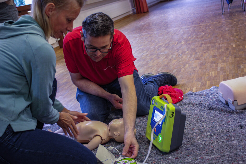 Unter der Leitung von Roger Wipfli von Gemeinsam-Leben-Retten fand wieder ein BLS-AED Grundkurs direkt vor Ort statt. In vier kurzweiligen Stunden lernten die Teilnehmenden alles Wichtige rund um Wiederbelebung, Erste Hilfe und den Umgang mit dem Defibrillator (AED).
