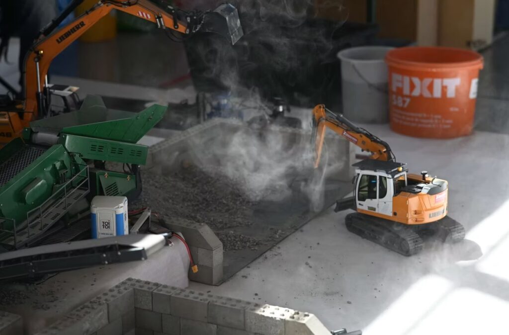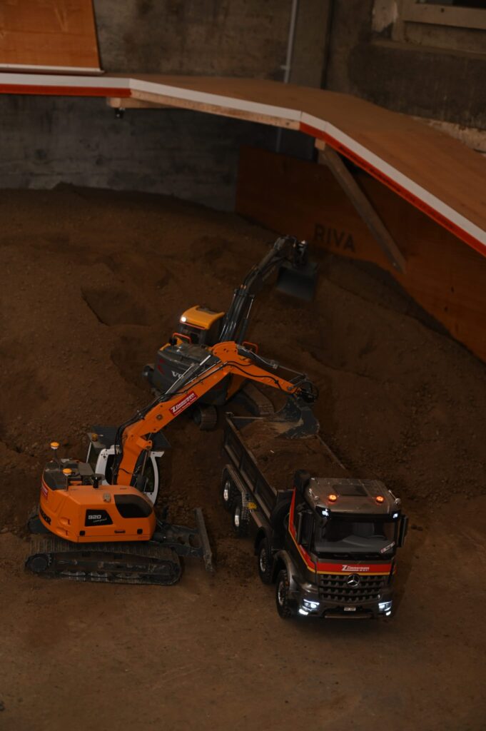 Das Faszinierende: Alle Fahrzeuge sind im Maßstab 1:14 gebaut. Jedes Detail, jede Technik entspricht den großen Vorbildern. Sie fahren, graben, transportieren – und bringen das Gefühl echter Baustellen in Miniaturform direkt zu den Augen der Besucher.