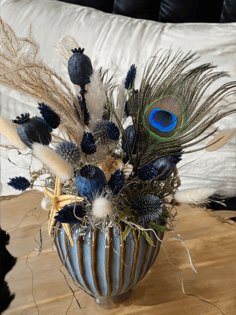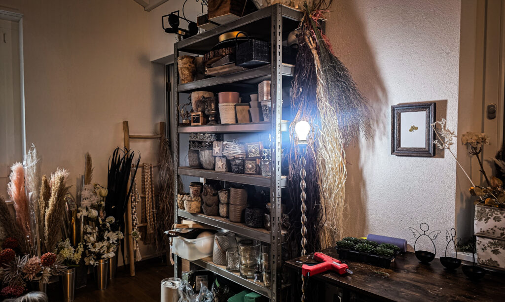 Erst als sie ihre Liebe zum Dekorieren wiederentdeckte, fand sie zu sich selbst zurück. Ihre Trockenblumen-Gestecke, die sie jahrelang im privaten Umfeld gefertigt hatte – für Freunde, Familie und auch im kleinen Rahmen für die Nachbarschaft – bekamen plötzlich eine neue Bedeutung. Sie wurden Ausdruck ihrer inneren Freude, ihrer Kreativität, ihrer eigenen Geschichte.
