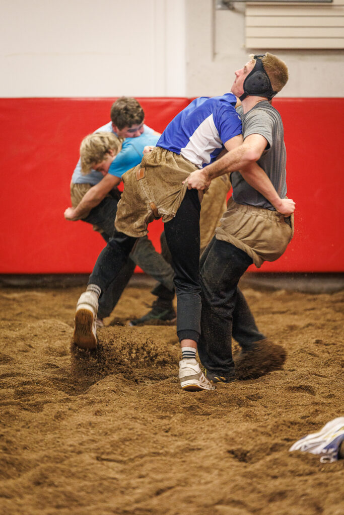 Der Sägemehlring knistert vor Spannung, die Luft riecht nach Holz, Schweiß und Erwartung. Drei junge Emmetter – Levin Kündig, Basil Odermatt und Andri Würsch – treten ein, jeder Schritt fest, jeder Blick entschlossen. Man spürt den Stolz, hier zu stehen, Teil einer jahrhundertealten Tradition zu sein. Jeder Griff, jede Bewegung ist Ausdruck von Leidenschaft, Stärke und Kampfgeist.
