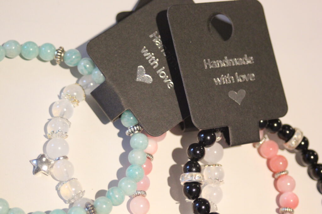 Neben der Familie entwickelte sie ihre Leidenschaft für Schönheit und Design weiter und absolvierte eine Ausbildung zur Haut- und Makeup-Fachberaterin. Ihr kreatives Talent zeigte sich besonders in der Schmuckherstellung, die sie immer wieder liebevoll nebenbei betrieb. Anfangs gab sie ihre Schmuckstücke ihrer Schwester Sandra mit auf Märkte – bis diese ihr riet, das Geschäft selbst in die Hand zu nehmen, denn ihre Schmuckstücke fanden großen Anklang. Bei ihrem Schmuck legt Nadia Wert auf gute Qualität. So bestehen ihre Armkettchen und Halsketten grösstenteils aus echten Edelsteinen, Holzkreolen und Silber. «Die Schmuckherstellung ist für mich – nebst der Familie – eine Zeit der Ruhe.», erklärt Nadia, «Bei der Herstellung kann ich mich entspannen und kann meine freie Zeit geniessen und meinen Gedanken freien Lauf lassen.»