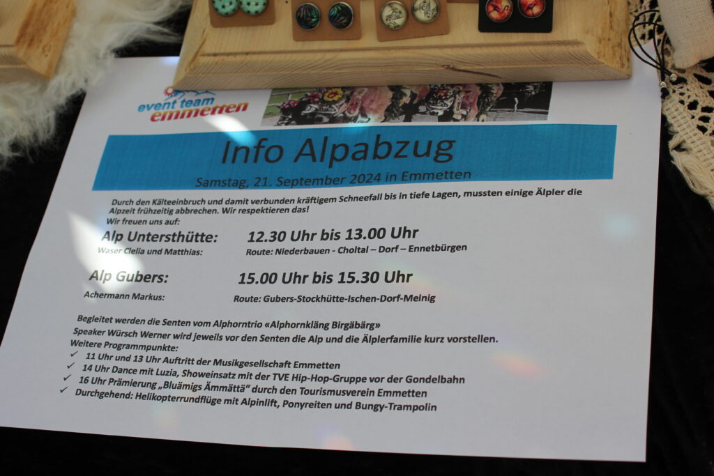 Gelebte Tradition erwartet die Gäste ab 11.00 Uhr, wenn verschiedene Senten Vieh vom Niederbauen und der Stockhütte durchs Dorf ziehen. Die prachtvoll geschmückten Kühe, versehen mit handgebundenem Kopfschmuck und grossen Glocken, bieten ein Bild wie aus einer anderen Zeit – begleitet von den warmen Tönen der Alphornbläser. Ein Moment voller Ehrfurcht, Ursprünglichkeit und echter Dankbarkeit für eine unfallfreie Alpsaison.